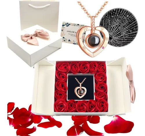 Presente Dia Dos Namorados Rosa Eterno + Colar Te Amo 100 Idiomas(Revestimento de ouro)