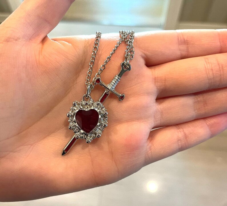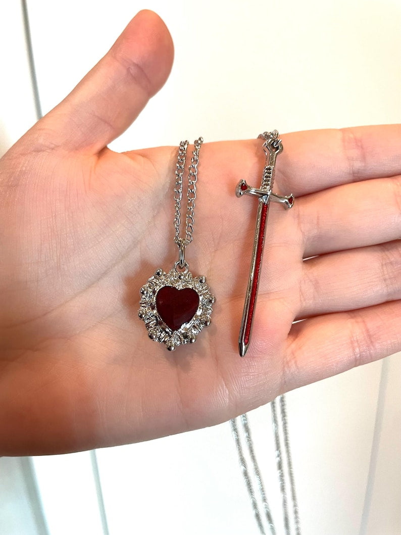 ❤️ Colar de espada de coração vermelho – Joias para amantes de almas ousadas 🖤