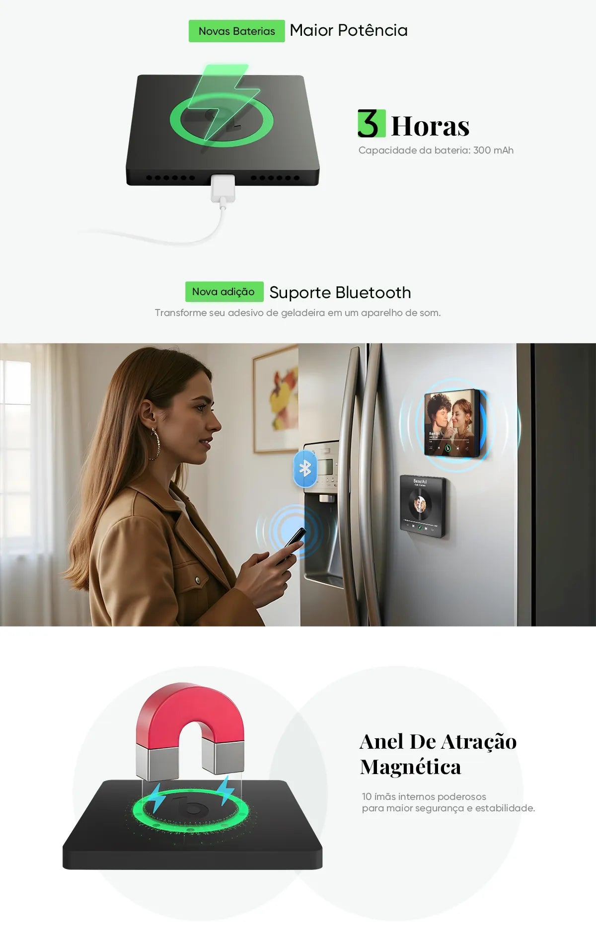 Prático e bonito: O design de aparência requintada pode ser usado como decoração na geladeira para adicionar interesse à vida, e também pode tocar música quente inadvertidamente, para que o amor permeie cada canto.